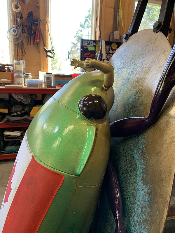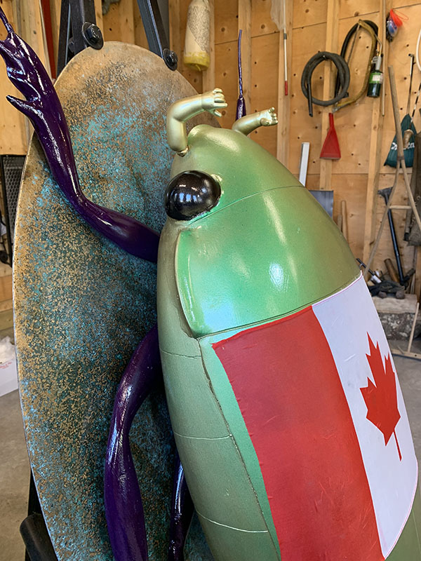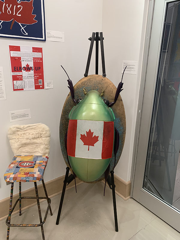 Scarab Beetles have long been held sacred by civilizations, beginning with the Ancient Egyptians. Worn as amulets, scarabs ward off evil, harm, and illness to bring good fortune. The current United States Administration presents an evil existential threat to our Canadian Sovereignty. My scarab beetle sculpture has its Elbows Up to protect Canada from this threat. This sculpture is a good luck talisman for Canada to remain a sovereign nation.