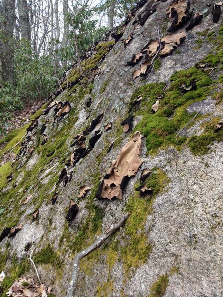 The Appalachian Trail itself is extremely frustrating to me because you can never just walk. It’s hard to describe to someone who has not experienced it. The trail is never, ever, flat. It’s always up up up and down down down plus it’s slanted left or right much of the time so you’re trying not to slide sideways causing the feet constant lateral stress. There’s no chance to look at birds, bugs, fabulous vistas, twirl your hiking sticks, or make long strides. Plus, this time of the year the trail is usually wet, littered with 2-6 inches of wet leaves with loose stones mixed in, over a soil type that might be described as greased eel skin. Constant attention must be paid to every footstep or an unexpected fall will land you on your back looking at the dripping tree branches and sullen sky. I’ve had several bad falls so far. Luckily, nothing serious has happened. I constantly recite to myself “You can go slowly and carefully 100,000 times, but you can only smash your brains out once!” My chum “Loner Bohner ” cautioned weeks ago “If you want to look at something, stop dead and look at it. Then look at your feet before moving again.” Crossing a roadway you can put your foot down flat on brings a few seconds of ecstasy.